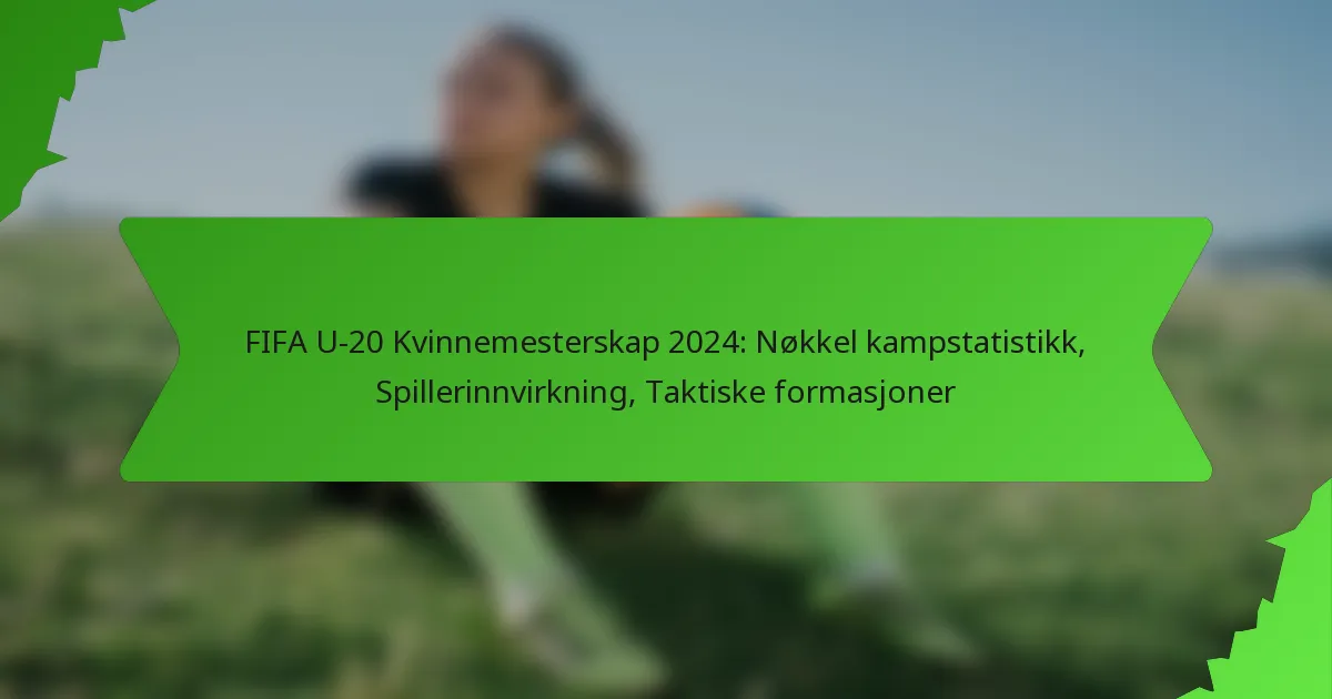 FIFA U-20 kvinne-VM 2024 fremhever viktigheten av kampstatistikk, og viser lagprestasjoner og individuelle spillerbidrag. Nøkkelmetrikker som ballbesittelsesprosent og skudd på mål avslører effektiviteten av ulike taktiske formasjoner, mens fremragende spillere har hatt betydelig innvirkning gjennom scoringer og målgivende pasninger, som til slutt har formet turneringens utfall.