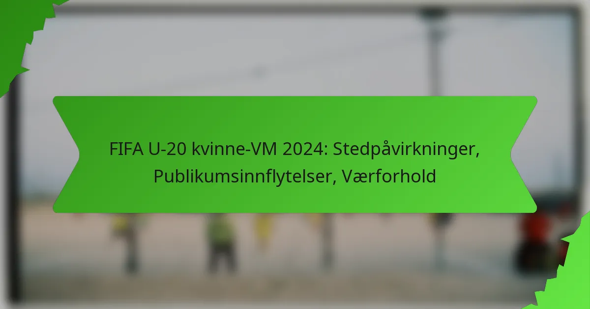 FIFA U-20 Verdensmesterskap for kvinner 2024 vil bli påvirket av ulike faktorer, inkludert valg av arena, publikumsdynamikk og værforhold. Valget av lokasjoner forbedrer ikke bare tilgjengelighet og engasjement, men spiller også en avgjørende rolle i å fremme kvinnefotball globalt. I tillegg kan atmosfæren skapt av fans påvirke spillerprestasjoner og kampresultater, mens varierende værforhold kan påvirke spillestilen og den totale opplevelsen for både lag og tilskuere.